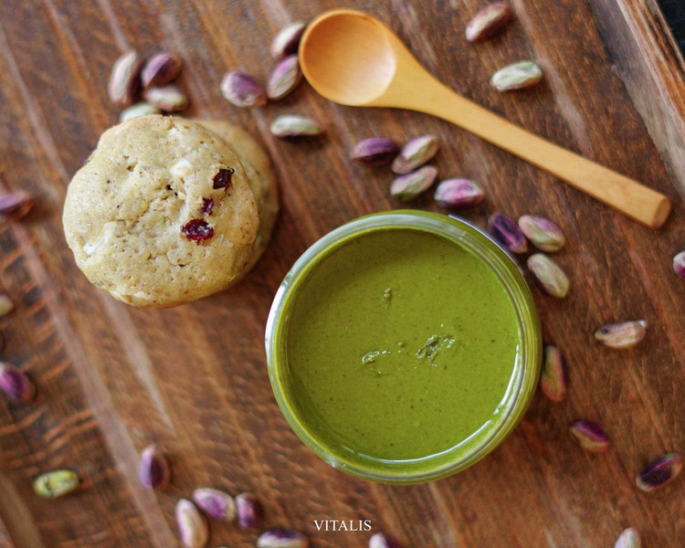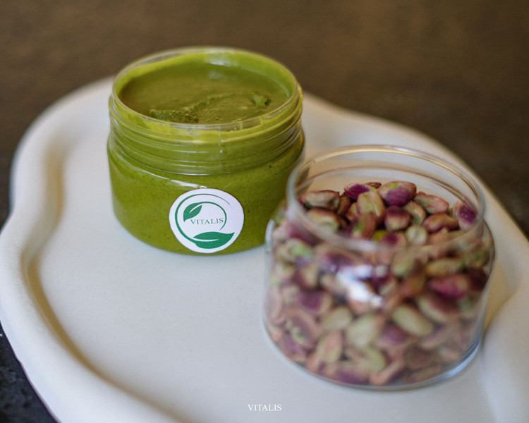 کره پسته ویتالس از بهترین نوع پسته (پسته قزوین)که دارای رنگ سبز و خواص بالاتری نسبت به نوع دیگر پسته ها و فاقد مواد افزودنی/نگهدارنده و قند و نمک به صورت صد در صد ارگانیک تهیه و تولید میشود از خواص کره پسته میتوان به موارد ذیل اشاره کرد